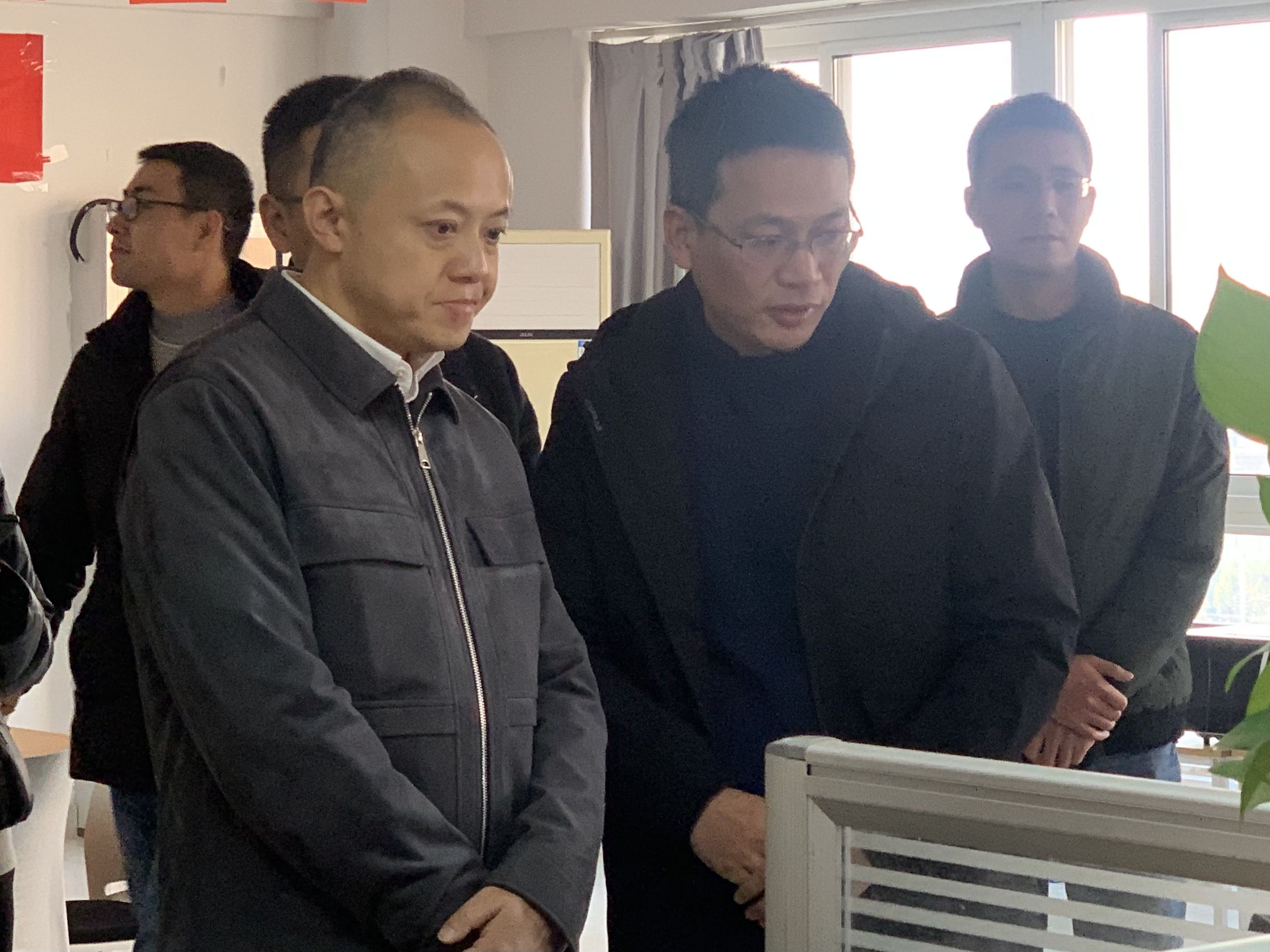 12月13日下午,副市长秦俊峰、花山区副区长赵建鸣、花山区经信局局长李金德带领市经信局等部门负责人来我公司调研考察,我公司总经理殷志炜、副总经理孔毛毛等陪同调研。
