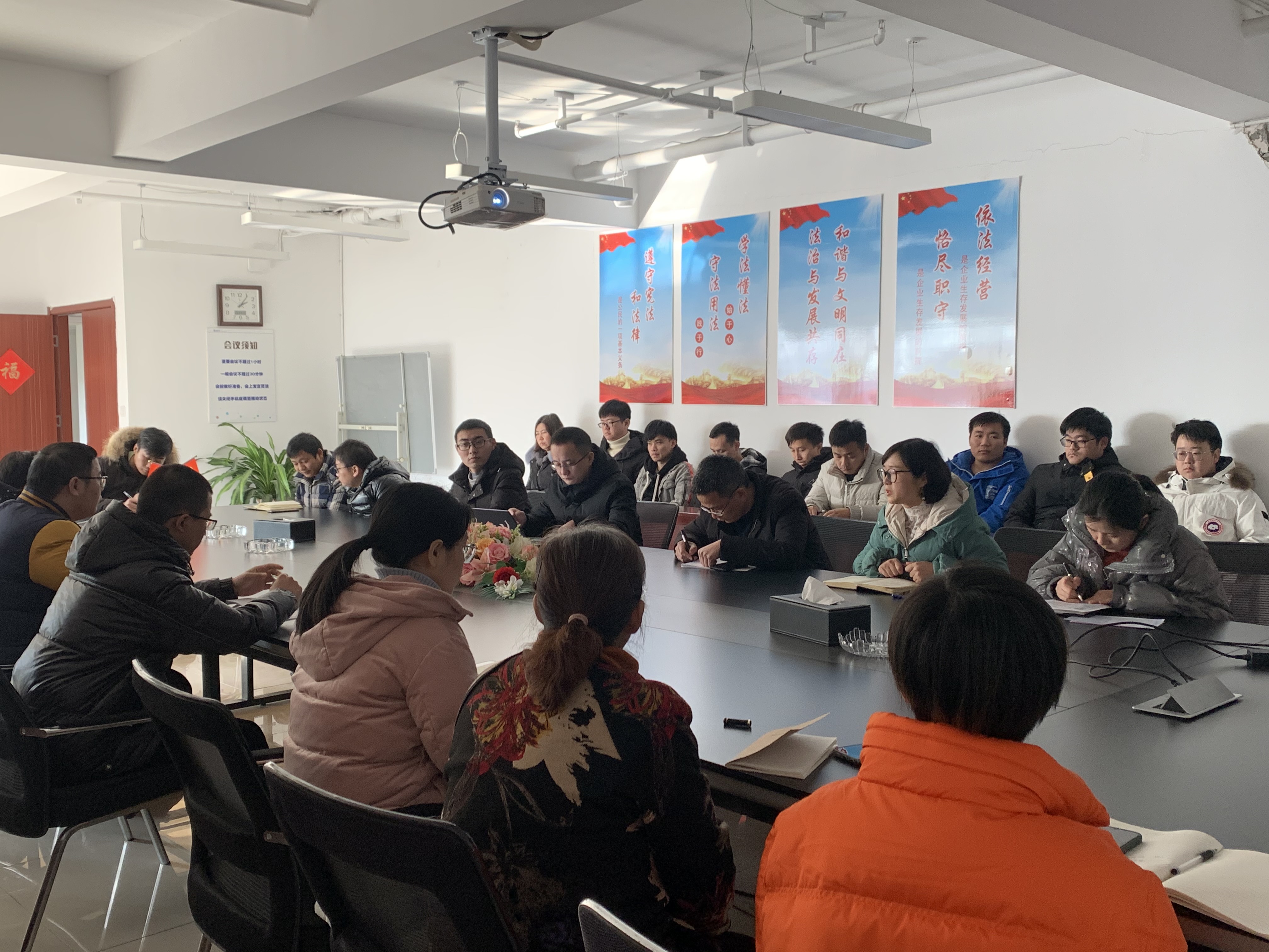 会议中总经理殷志炜指出,开发人员须在开发过程中不断总结,清晰个人的自我定位,用开放性的思维看问题;加强后端开发人员的业务学习,规范代码的操作。发挥技术能手“传帮带”作用,以营造“人人能成才、人人有其台”的进取氛围。