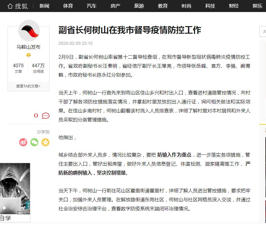 2月9日,副省长何树山率省第十二督导检查组,在我市督导新型冠状病毒肺炎疫情防控工作。省政府副秘书长汪春明,省经信厅副厅长王厚亮,市领导张岳峰、袁方、李强、阚青鹤,市政府秘书长陈永红分别参加。
