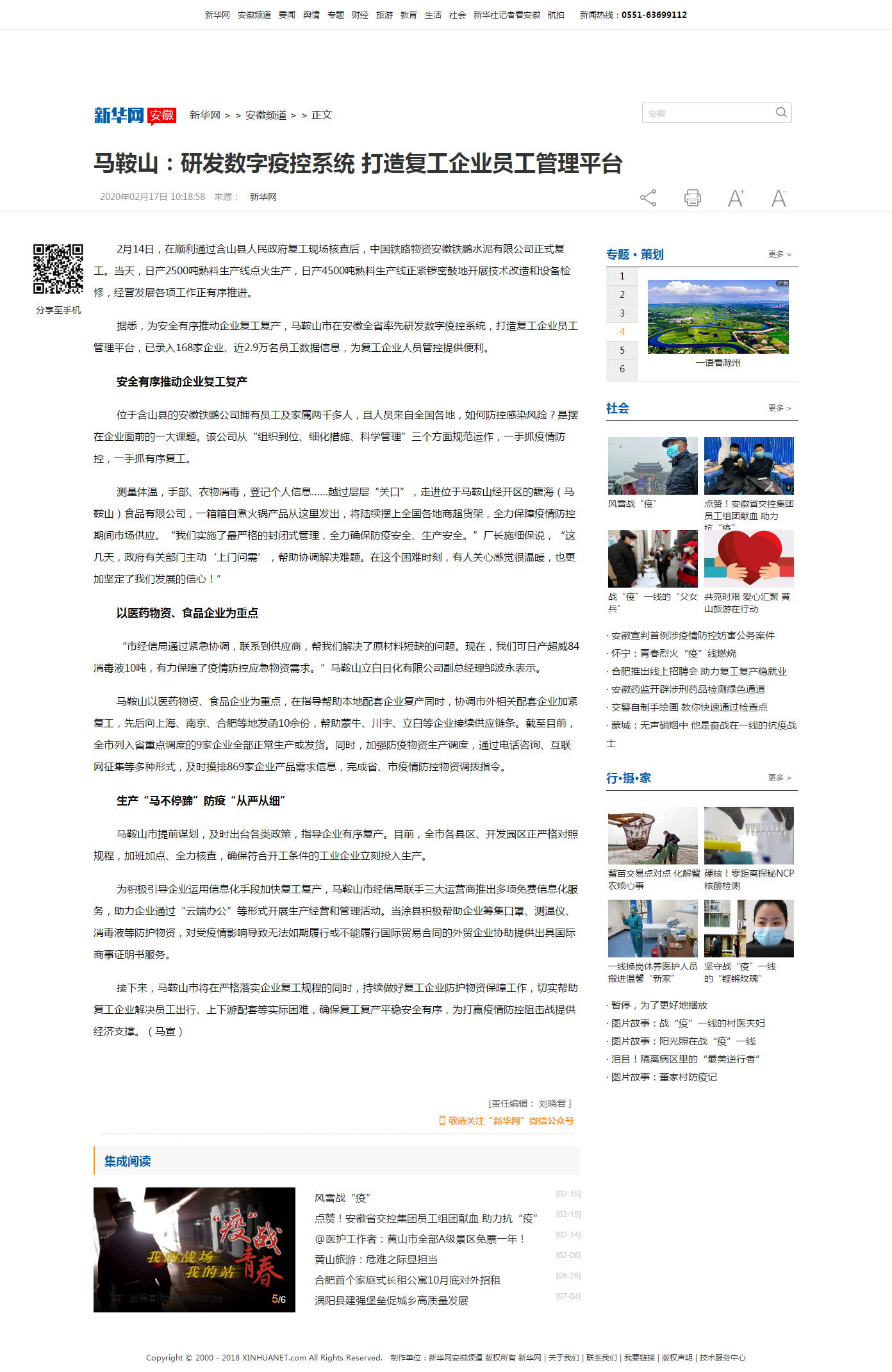 据悉,为安全有序推动企业复工复产,马鞍山市在安徽全省率先研发数字疫控系统,打造复工企业员工管理平台,已录入168家企业、近2.9万名员工数据信息,为复工企业人员管控提供便利。