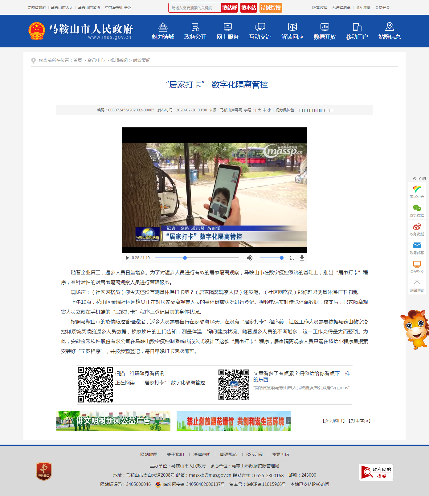 随着企业复工,返乡人员日益增多。为了对返乡人员进行有效的居家隔离观察,马鞍山市在数字疫控系统的基础上,推出“居家打卡”程序,有针对性的对居家隔离观察人员进行管理服务。