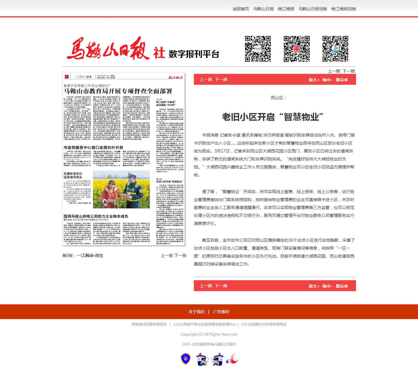 据了解,“智慧物业”开启后,将可实现线上缴费、线上报修、线上公告等,试行物业管理费缴纳与[ ]禁系统相挂钩,按时缴纳物业管理费的业主可直接刷卡进小区,未及时缴费的业主由人工服务通道提醒通行。此举可以实现物业管理费第三方监管,也可以规范处理小区内的违法违规和不文明行为,居民可通过管理平台对物业服务公司管理服务实行满意度评价。