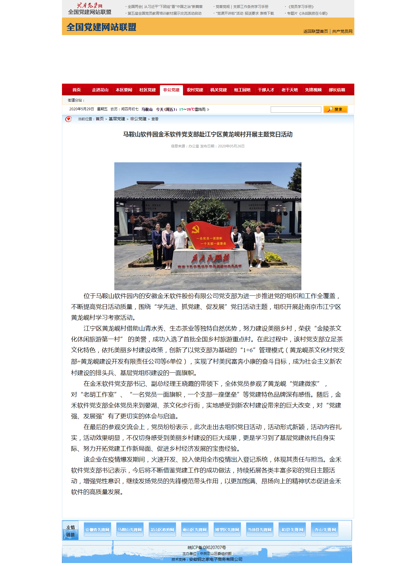 该企业在疫情爆发期间,火速开发、投入使用全市疫情出入登记系统,体现其责任与担当。金禾软件党支部书记表示,今后将不断借鉴党建工作的成功做法,持续拓展各类丰富多彩的党日主题活动,增强党性意识,继续发扬党员的先锋模范带头作用,以更加饱满、昂扬向上的精神状态促进金禾软件的高质量发展。